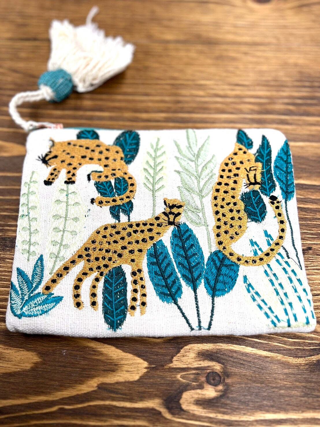 インパクトのあるレオパード刺繍がポイントのポーチです。