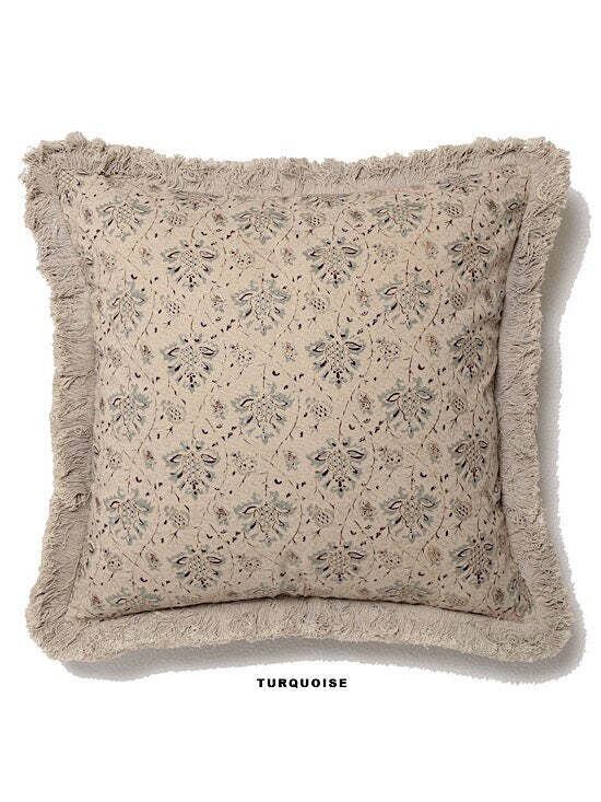 刺繍のような繊細な花柄プリントが施されたクッションカバーです。