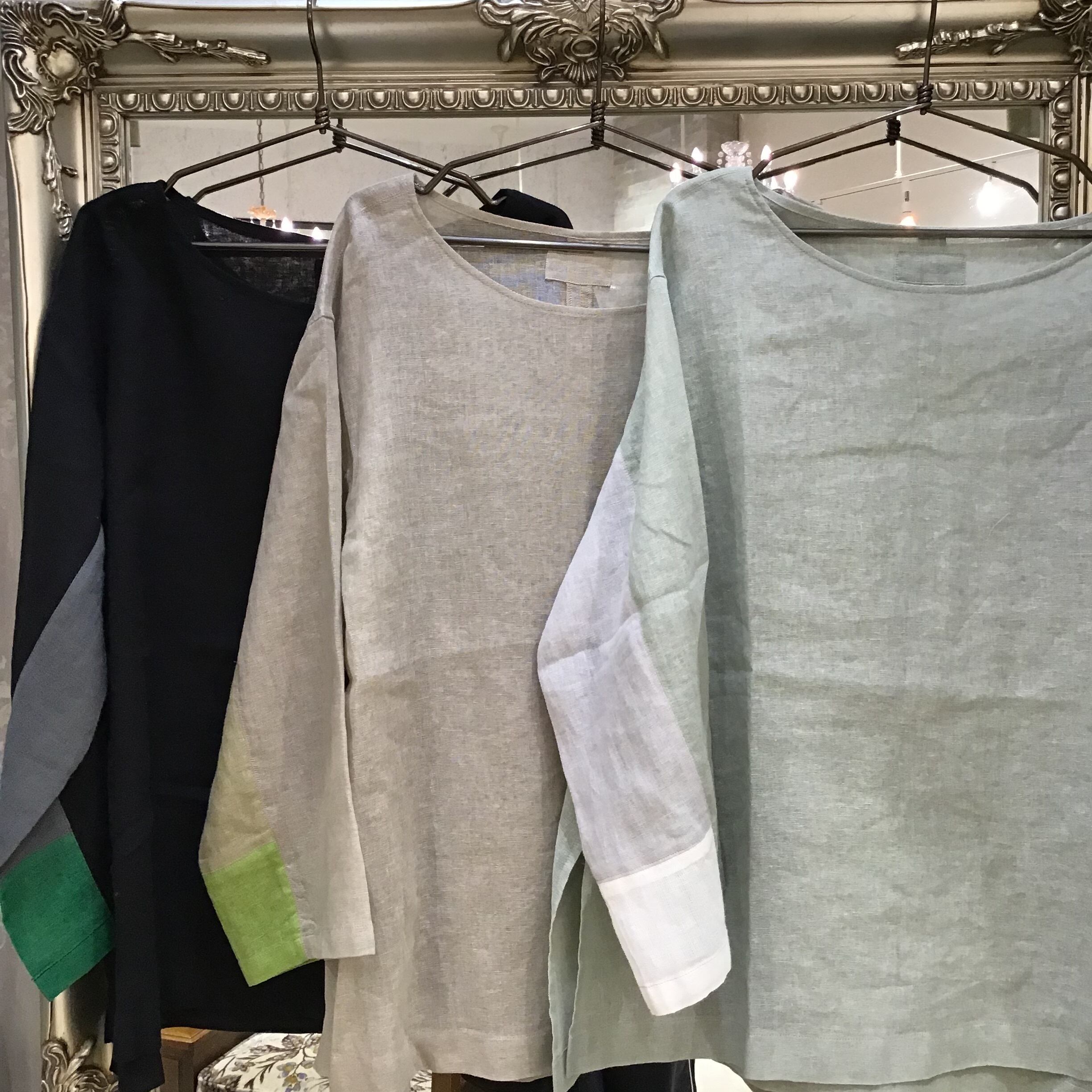 ウォッシャブルリネンのざっくり着ていただけるカラーブロックブラウスです!