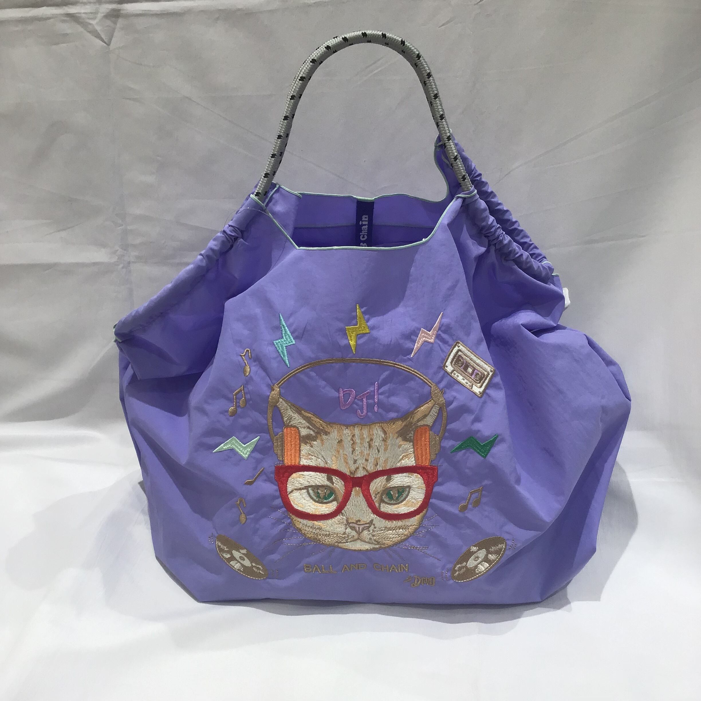 DJネコのLサイズ。 耐久性のあるエコバッグ。 お買い物やプレゼントにもおすすめ。 内ポケット1つあり。 サイズ:L 幅 約59cm 高さ 約51cm マチ 約15cm