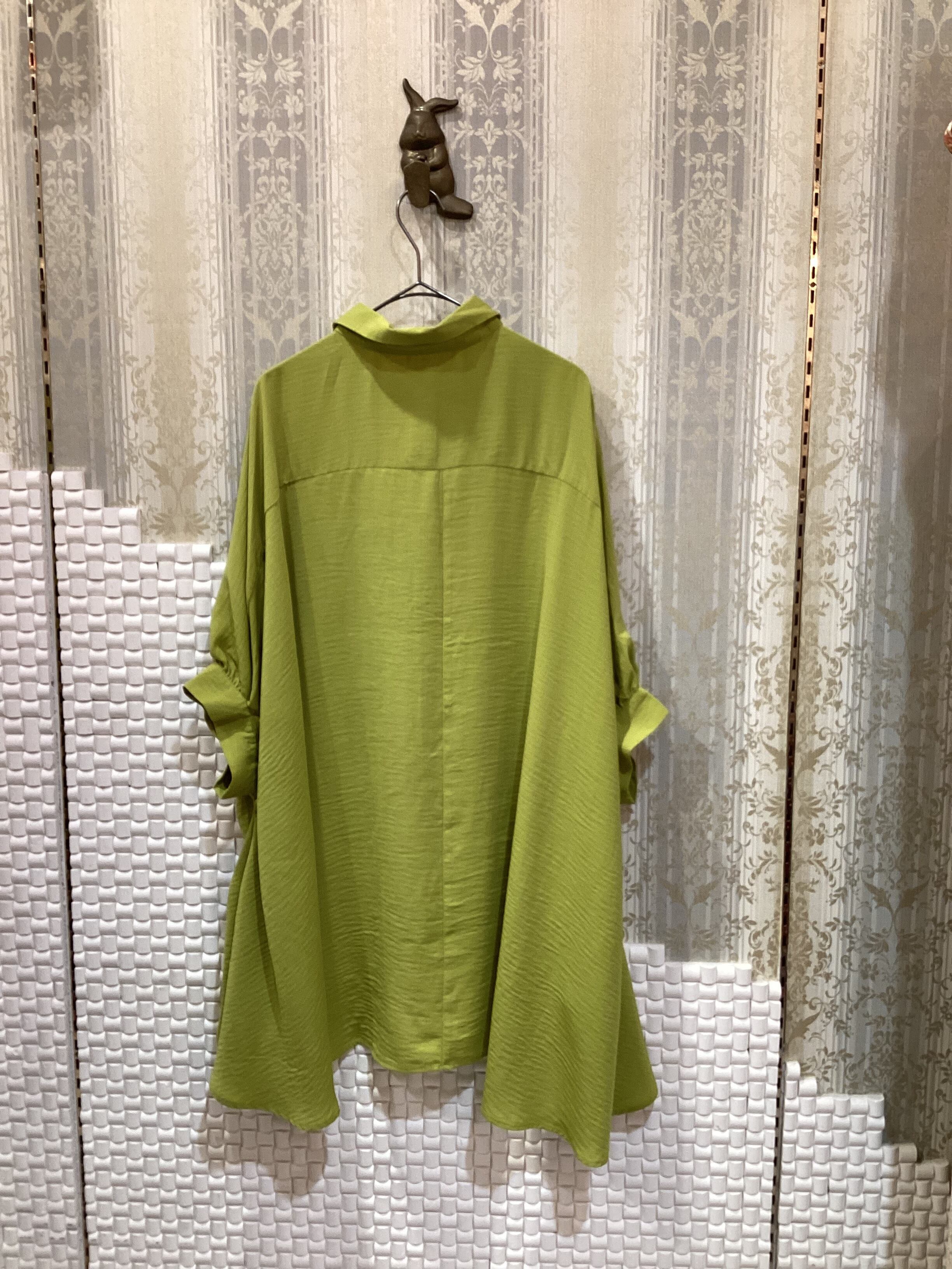サイズ M 素材 ポリエステル100% 着丈 前 約66㎝ 後 約82㎝ 身幅 約82㎝ サラッとした素材感で着心地がいいです。 羽織りにして一枚で着ても可愛いです。