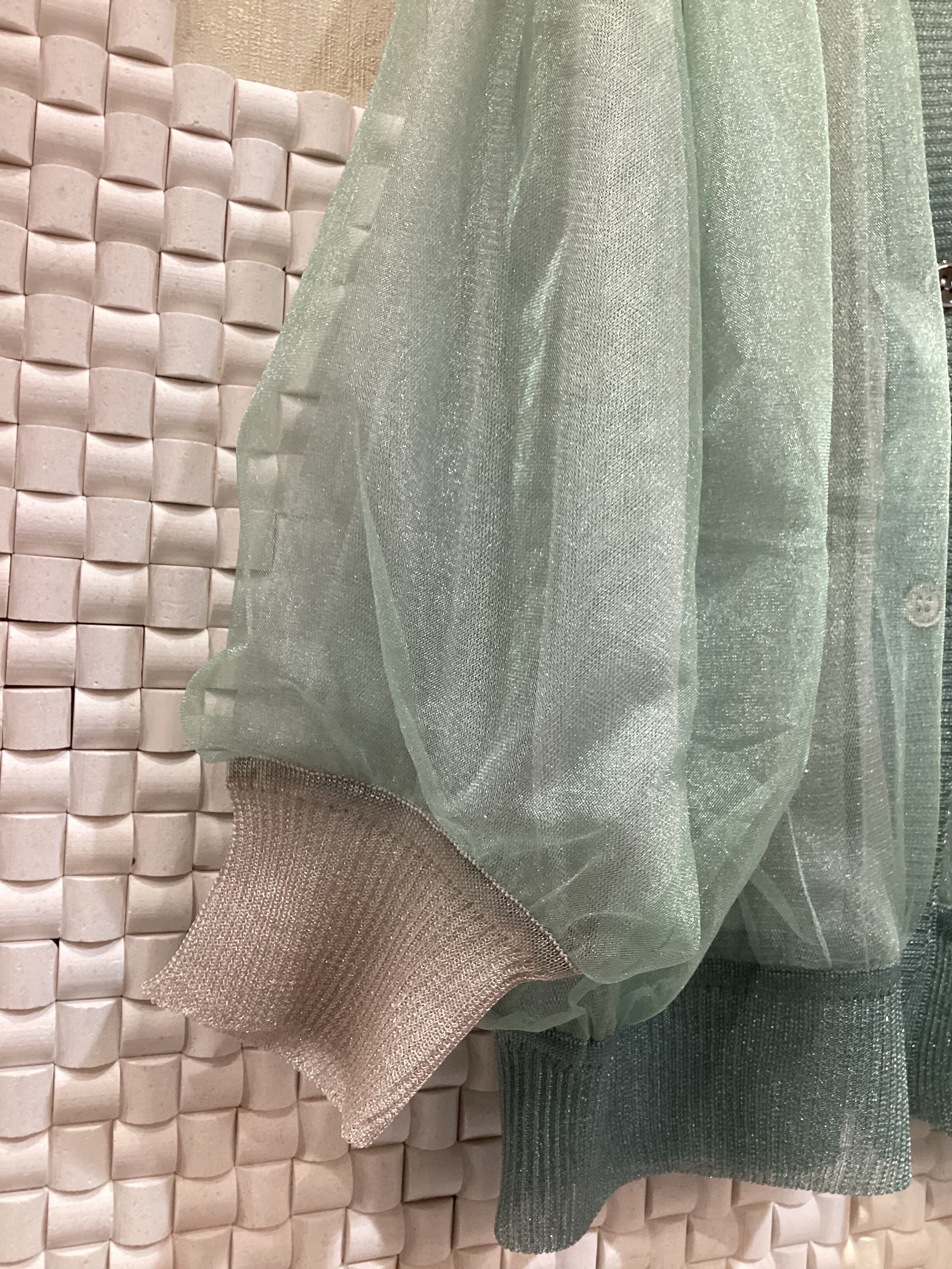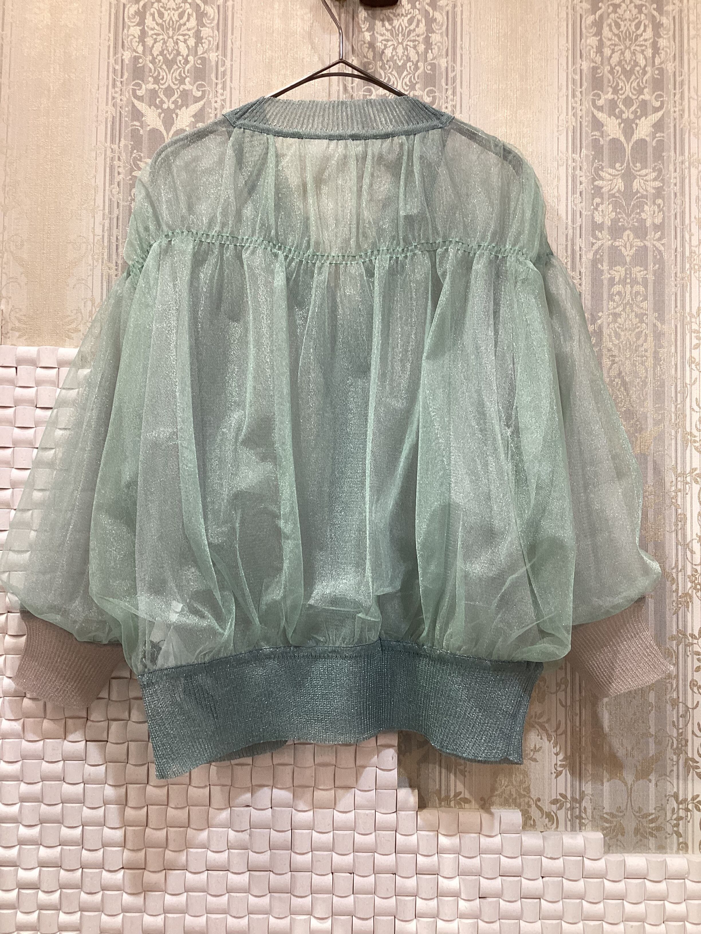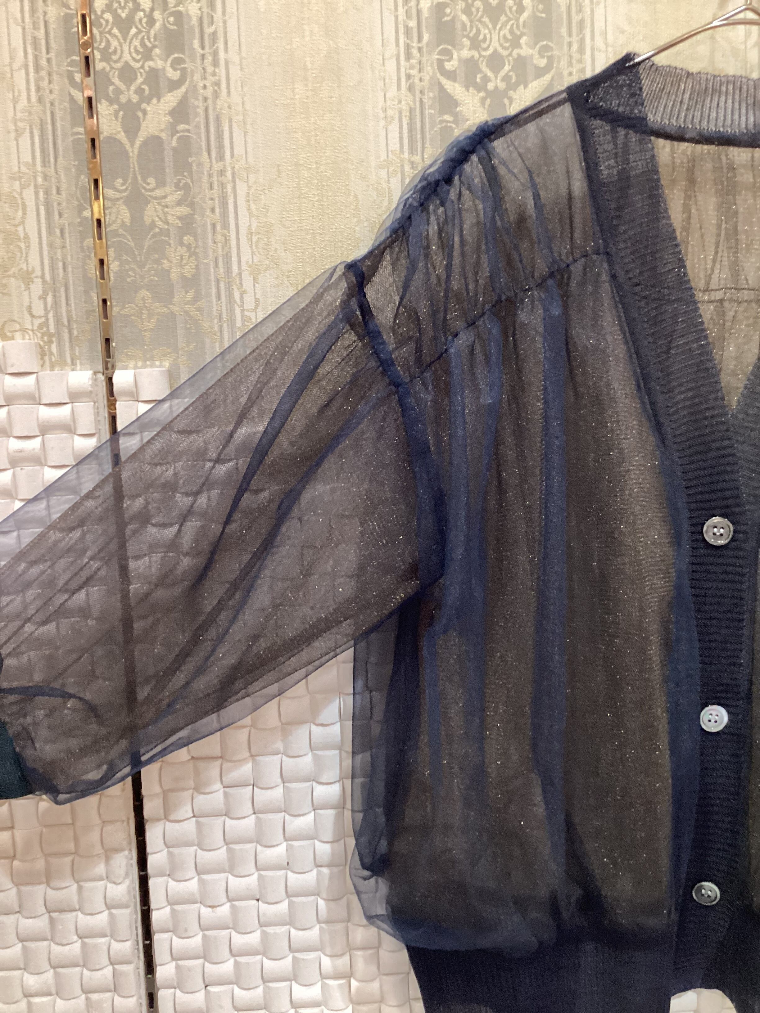 異なる色のナイロンチュールをレイヤードしたシアーカーディガン。