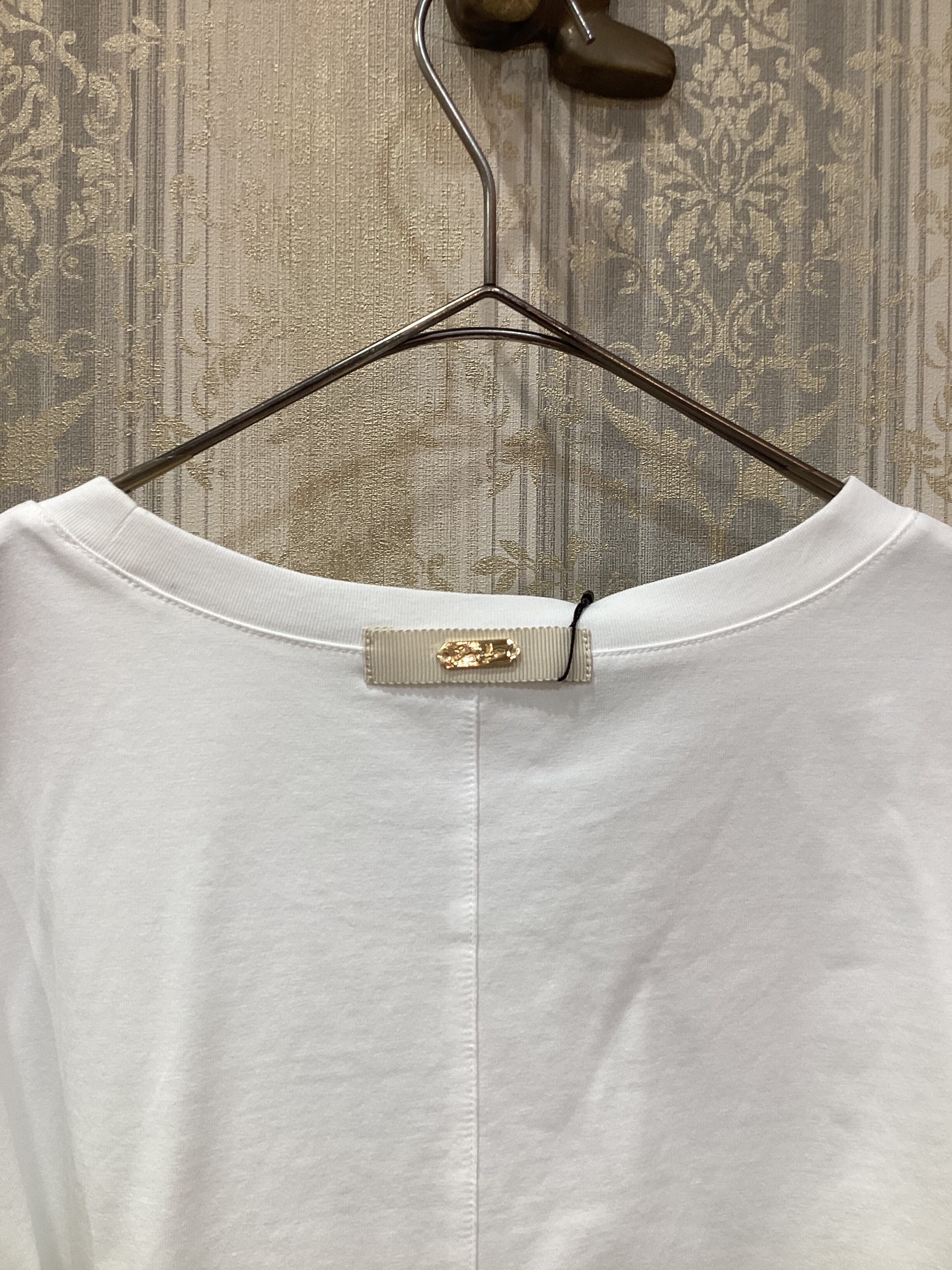 ランダムに配置したロゴプリントが印象的なTシャツ。適度な張りと柔らかさを兼ね揃えた肌触りの良いこだわり素材。