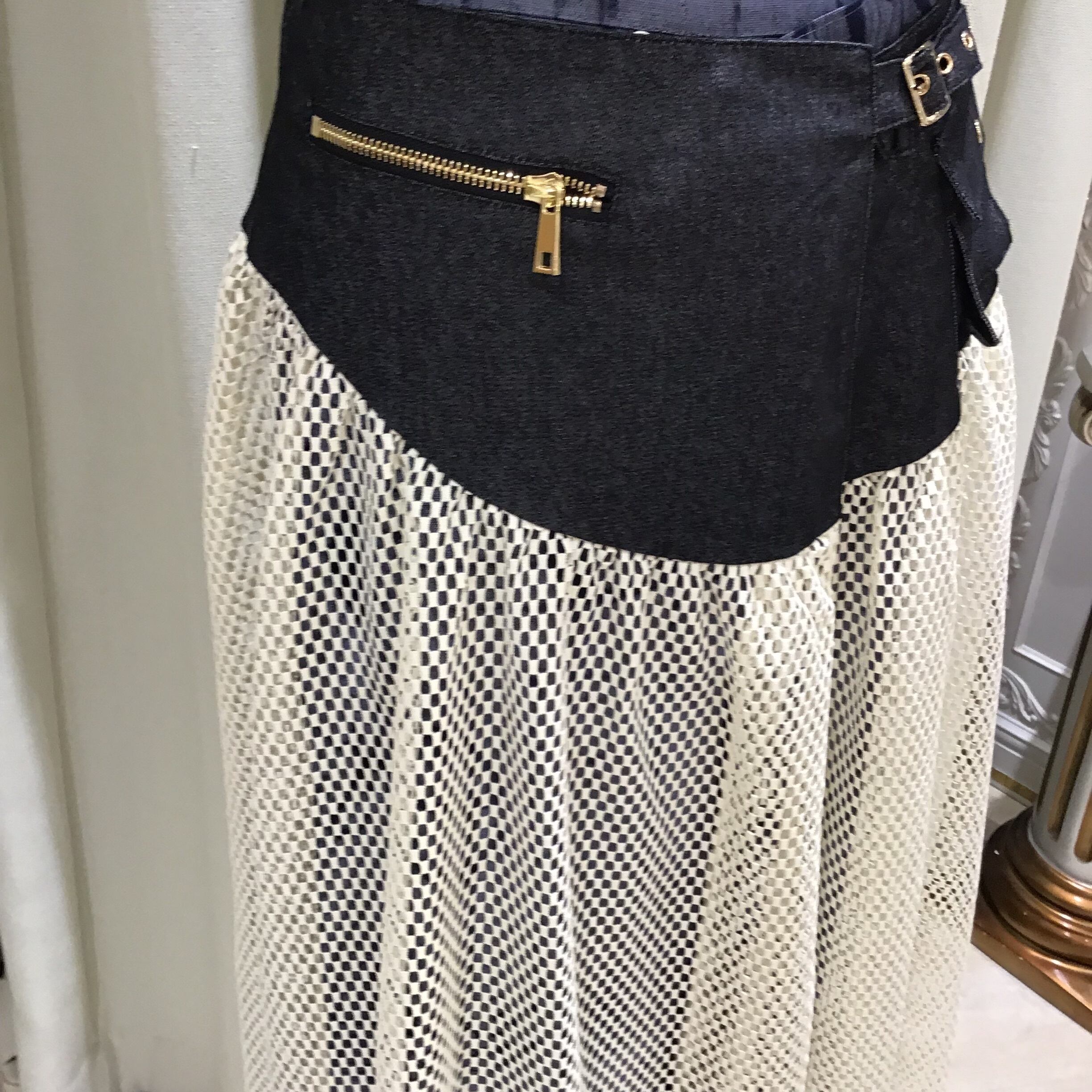 デニムなどにレイヤードするだけでトレンド感のあるスタイリングになる、メッシュオーバースカートです!