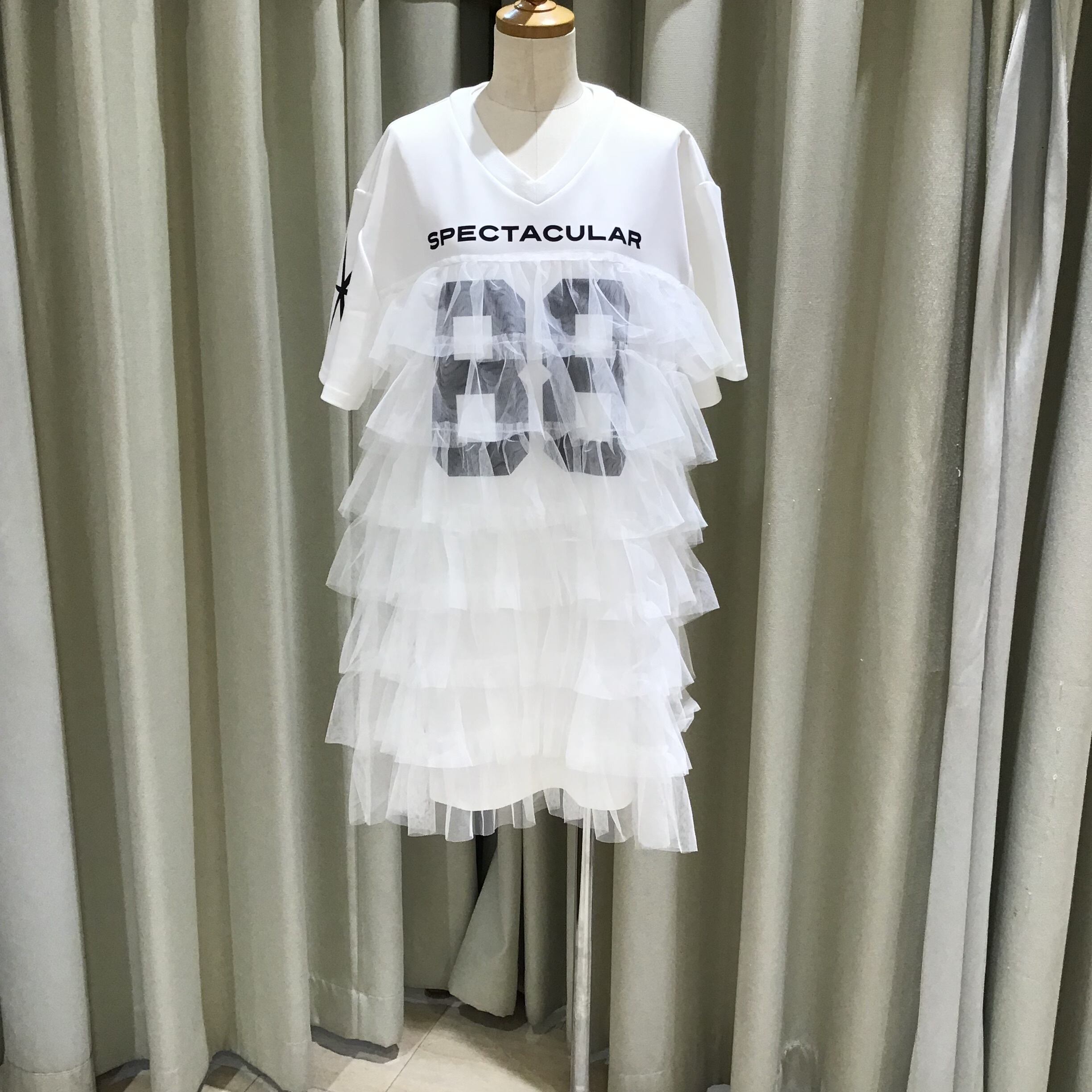 スポーティーなムードを盛り上げる光沢感のあるカットソーにナンバリング、たっぷりなチュールが施されたデザイン。1枚でミニワンピースにデニムなどボトムとのレイヤードも楽しめます◎